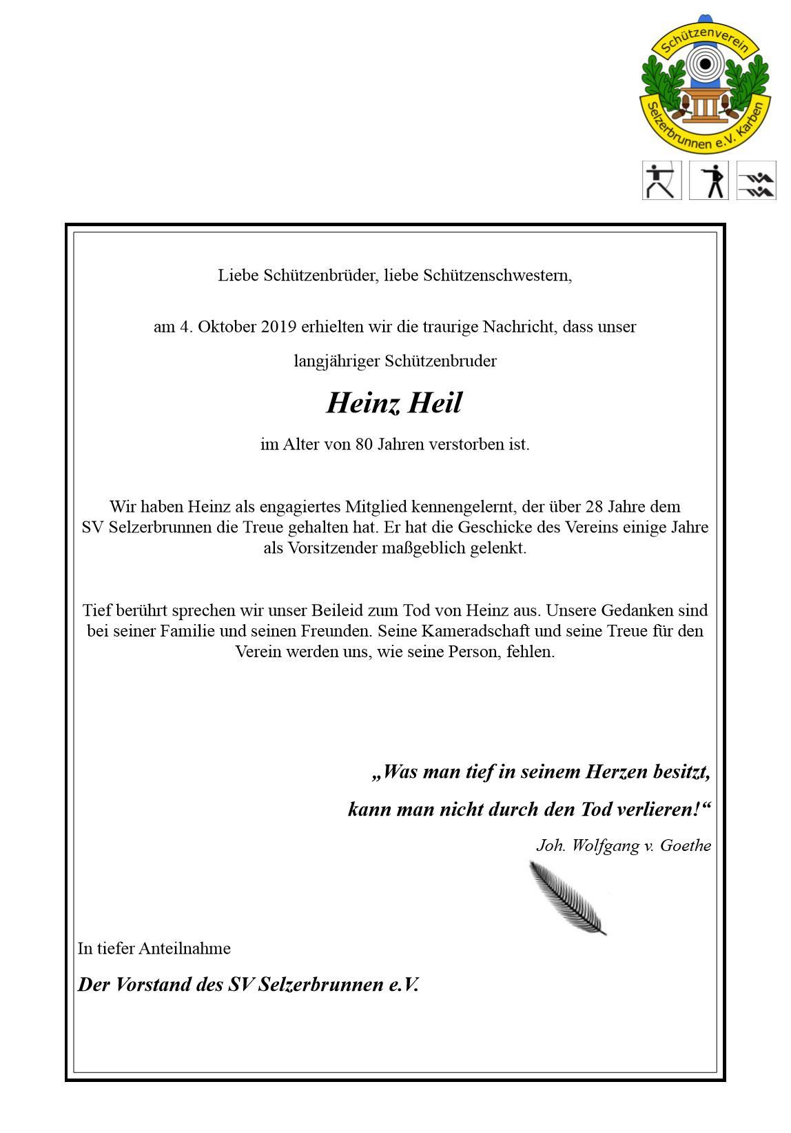Wir haben Heinz als engagiertes Mitglied kennengelernt, der über 28 Jahre dem SV Selzerbrunnen die Treue gehalten hat. Er hat die Geschicke des Vereins einige Jahre als Vorsitzender maßgeblich gelenkt.